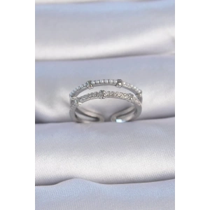 Pirinç Gümüş Renk Zirkon Taşlı İnci Detay Kadın Yüzük