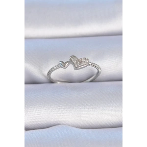 Pirinç Gümüş Renk Zirkon Taşlı Kalp Model Kadın Yüzük