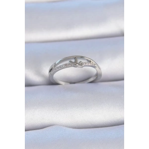 Pirinç Gümüş Renk "V" Model Zirkon Taşlı Kadın Yüzük