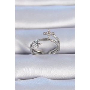Pirinç Gümüş Renk Zirkon Taşlı Yıldız Model Kadın Yüzük