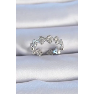 Pirinç Gümüş Renk Zirkon Taşlı Yonca Model Kadın Yüzük