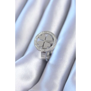 316L Çelik Gümüş Renk Zirkon Taşlı Yonca Model Kadın Yüzük