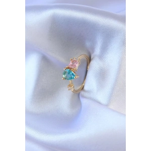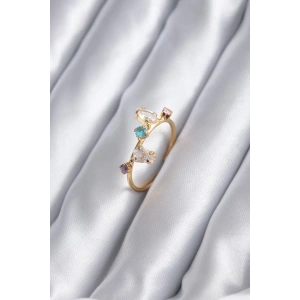 Gold Renk Renkli Zirkon Taşlı Kadın Yüzük