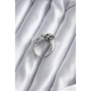 Gümüş Renk Kaplan Model Zirkon Taş Detay VİP Kadın Yüzük
