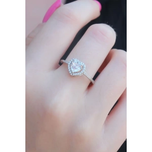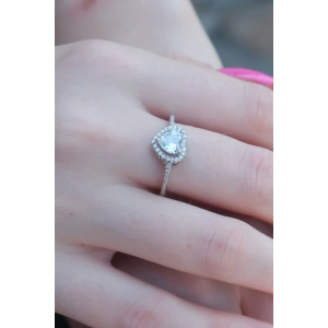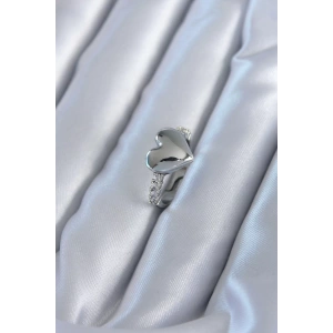 Gümüş Renk Zirkon Taşlı Kalp Model Charm Pirinç Kadın Yüzük