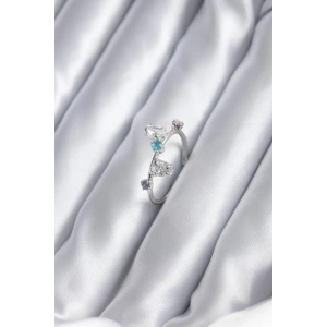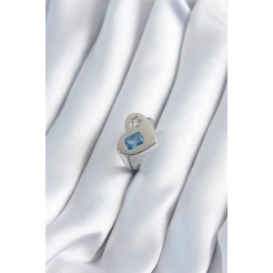Gümüş Renk Kalp Zirkon Taşlı Charm Model Pirinç Kadın Yüzük