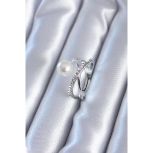 Gümüş Renk Zirkon Taşlı İncili Kadın Yüzük