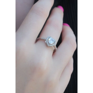 Gümüş Renk Pirinç Zirkon Taşlı Kalp Model Kadın Yüzük