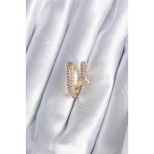Gold Renk Zirkon Taş Detay Pirinç Kadın Yüzük