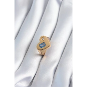 Gold Renk Pirinç Zirkon Taşlı Kalp Model Kadın Yüzük