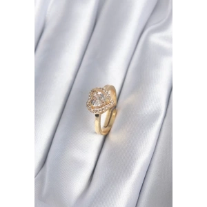 Gold Renk Zirkon Taşlı Kalp Model Pirinç Charm Kadın Yüzük