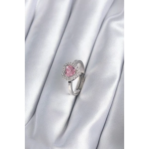 Pirinç Gümüş Renk Pembe Zirkon Taşlı Charm Model Kadın Yüzük