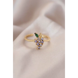 Ayarlamalı Altın Renk Metal Renkli Zirkon Taşlı Üzüm Yüzük