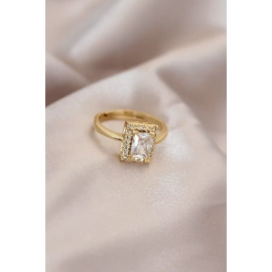 Ayarlamalı Gold Renk Metal Zirkon ve Kristal Taşlı Dikdörtgen Model Yüzük