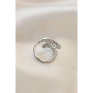 Ayarlamalı Silver Renk Metal Zirkon Taşlı Kanat Yüzük