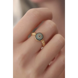 Gold Renk Nazar Boncuk Figür Zirkon Taş Detay Kadın Yüzük