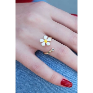 Gold Renk Papatya Model Zirkon Taş Detay Kadın Yüzük