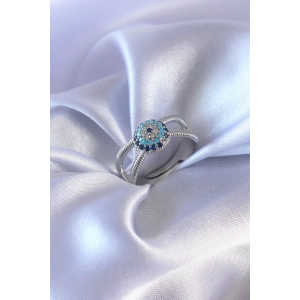 Gümüş Renk Nazar Boncuk Model Kadın Yüzük