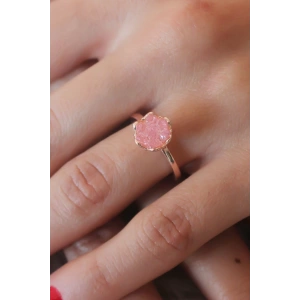 Pembe Lotus Çiçek Figür Gold Renk Kadın Yüzük