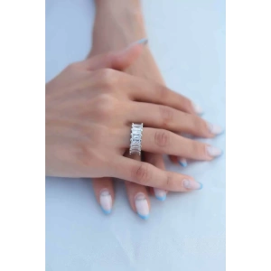 Zirkon Taşlı Gümüş Renk Baget Kadın Yüzük