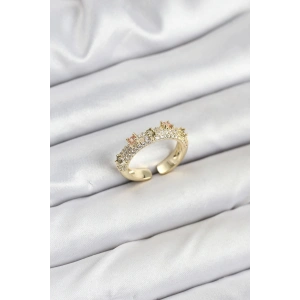 Pirinç Gold Renk Zirkon Taşlı Vintage Kadın Yüzük