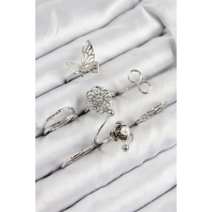 Pirinç Gül Kelebek Model Gümüş Renk Kadın Yüzük Kombin Set