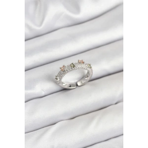 Pirinç Gümüş Renk Zirkon Taşlı Vintage Kadın Yüzük