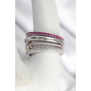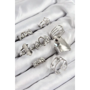 Pirinç Gümüş Renk Zirkon Taşlı 4'Lü Kadın Yüzük