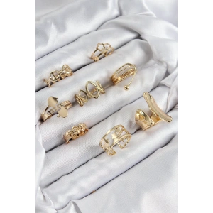 Pirinç Kelebek Ve Kalp Model Gold Renk Kadın Yüzük Kombin Set