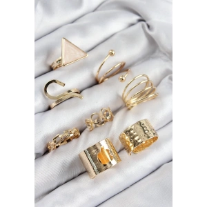 Pirinç Üçgen Model Gold Renk Kadın Yüzük Kombin Set