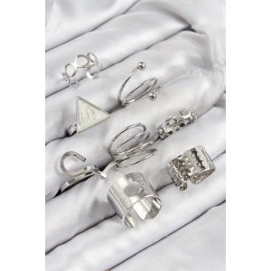 Pirinç Üçgen Model Gümüş Renk Kadın Yüzük Kombin Set
