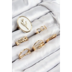 Pirinç Yaprak Model Gold Renk Kadın Yüzük Kombin Set