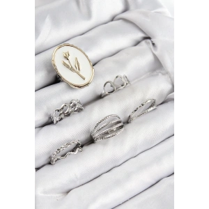 Pirinç Yaprak Model Gümüş Renk Kadın Yüzük Kombin Set