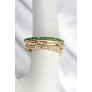 Pirinç Gold Renk Zirkon Taşlı 4'Lü Kadın Yüzük