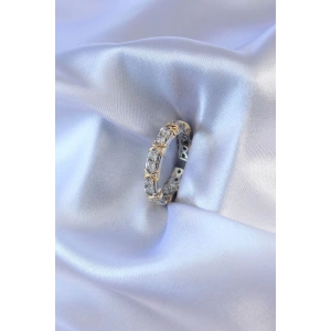 Gümüş Renk Zirkon Taşlı Gold Renk Detay Xoxo Kadın Yüzük