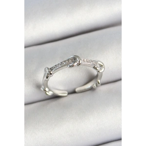 Pirinç Düğüm Figürlü Zirkon Taşlı Gümüş Renk Ayarlanabilir Kadın Yüzük