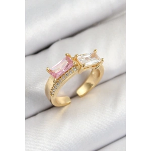 Pirinç Zirkon Taşlı Dikdörtgen Model Gold Renk Kadın Yüzük